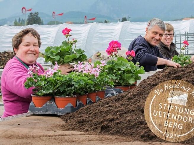 Grosse Auswahl von Geranien zum selber eintopfen oder eintopfen lassen mit Verpflegung im Restaurant Alpenblick.